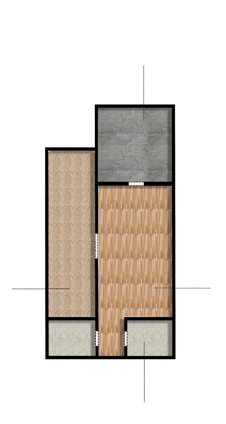 Sigue la misma intención de representación de los conceptos con la variación de las tiras de madera como la música, y agregar los espacios.