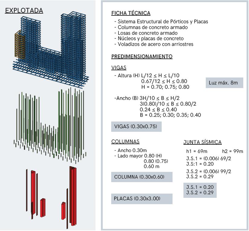 Se realizó una investigación para la elección del sistema estructural. Finalmente, se eligió trabajar con VOLADOS; además de tener vigas y columnas de concreto.