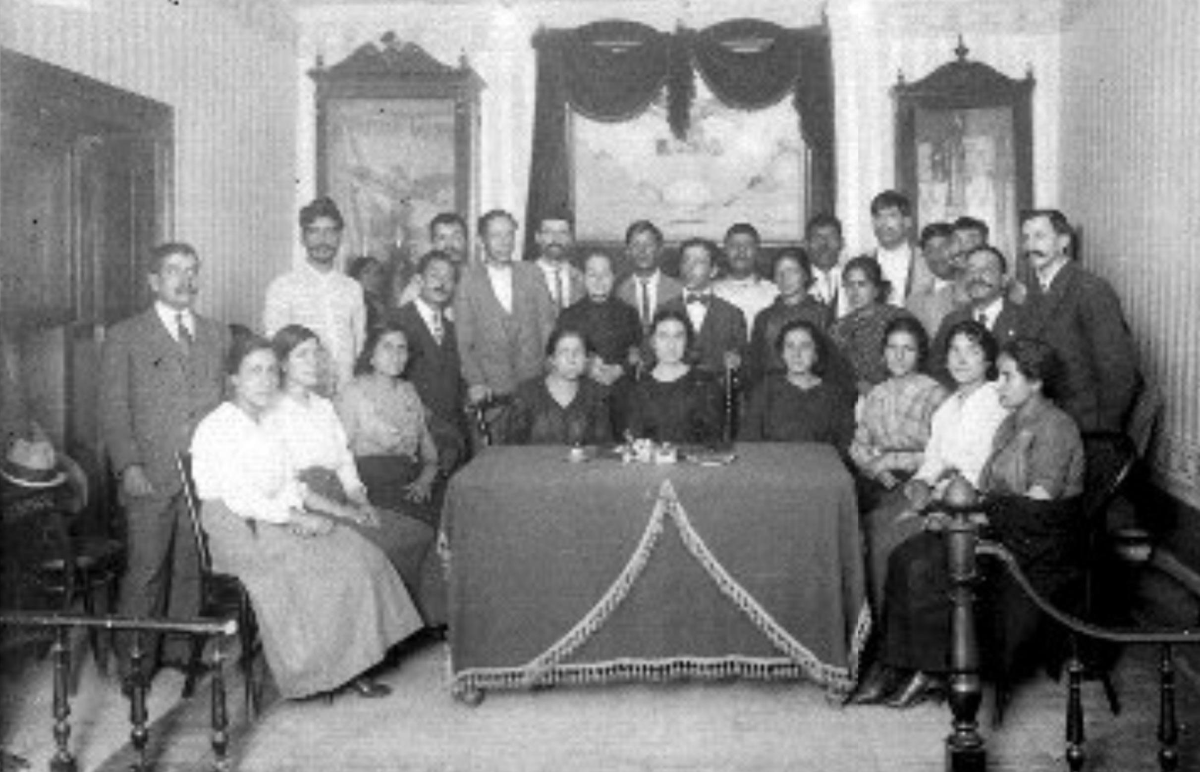 Nueve están sentadas y dos de pie, entre los trabajadores que dirigen el movimiento que pugna por salarios justos, reducción de la jornada laboral –que entonces era hasta de 16 horas diarias–, atención médica y prestaciones indispensables.