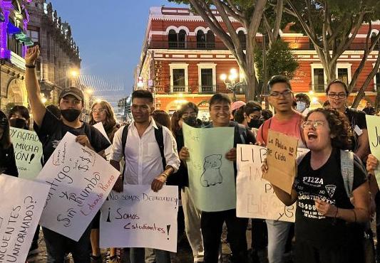 Alrededor de 500 estudiantes de la BUAP marcharon pacíficamente para exigir la liberación de sus compañeros.