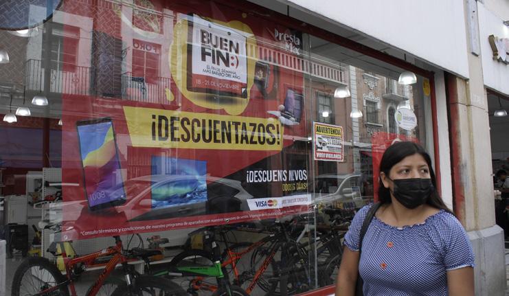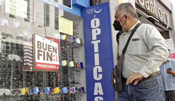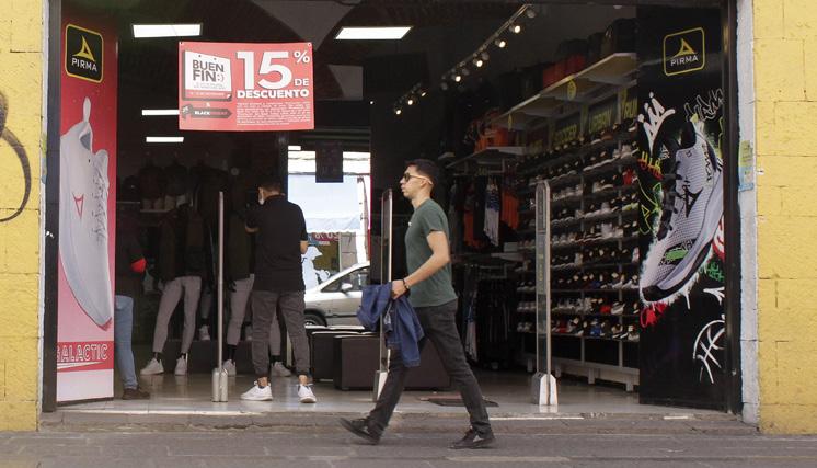 Tiendas del Centro Histórico colocan pu blicidad alusiva al Buen Fin que espera a los consumidores del viernes 18 al lunes 21 de este mes.