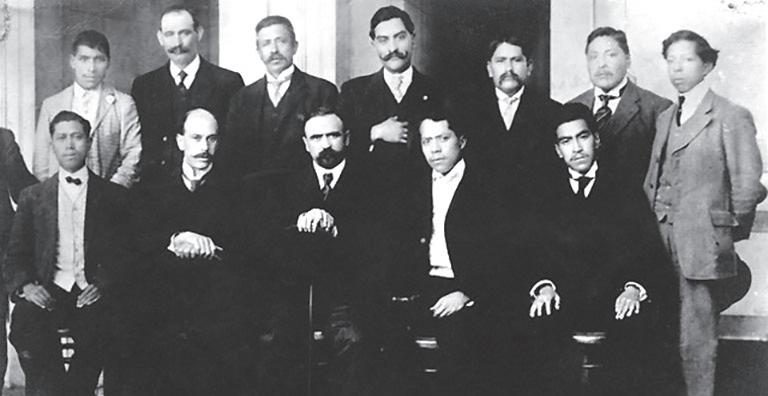 En esta imagen, al centro y sentado se encuentra Francisco I. Madero; junto a él, Aquiles Serdán Alatriste