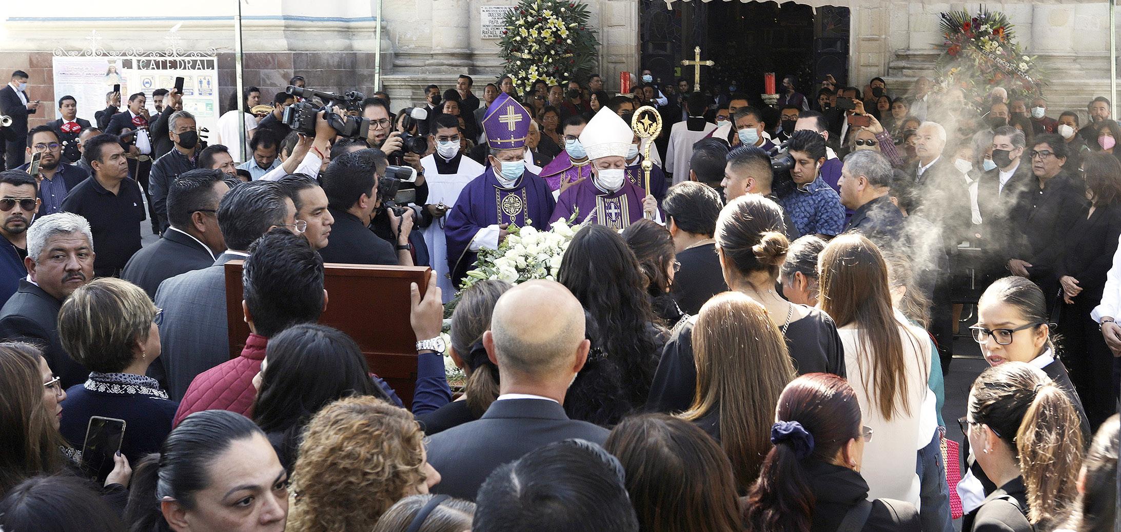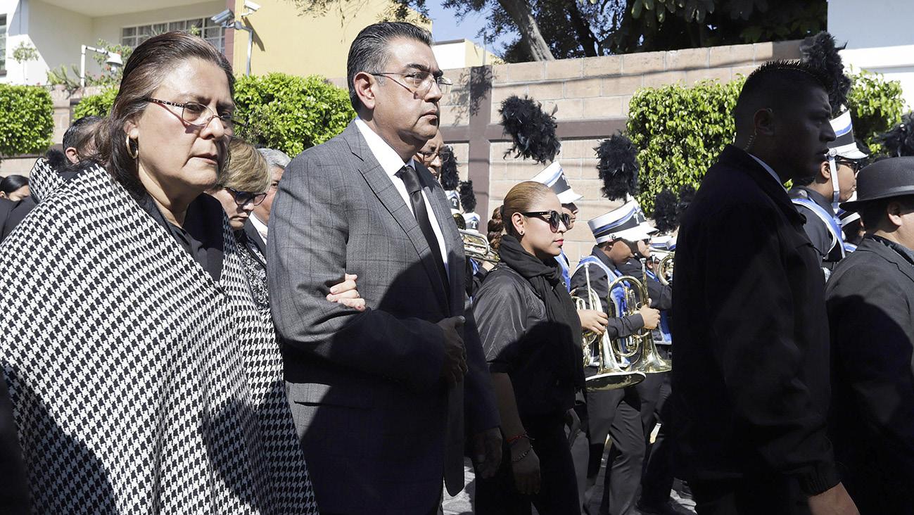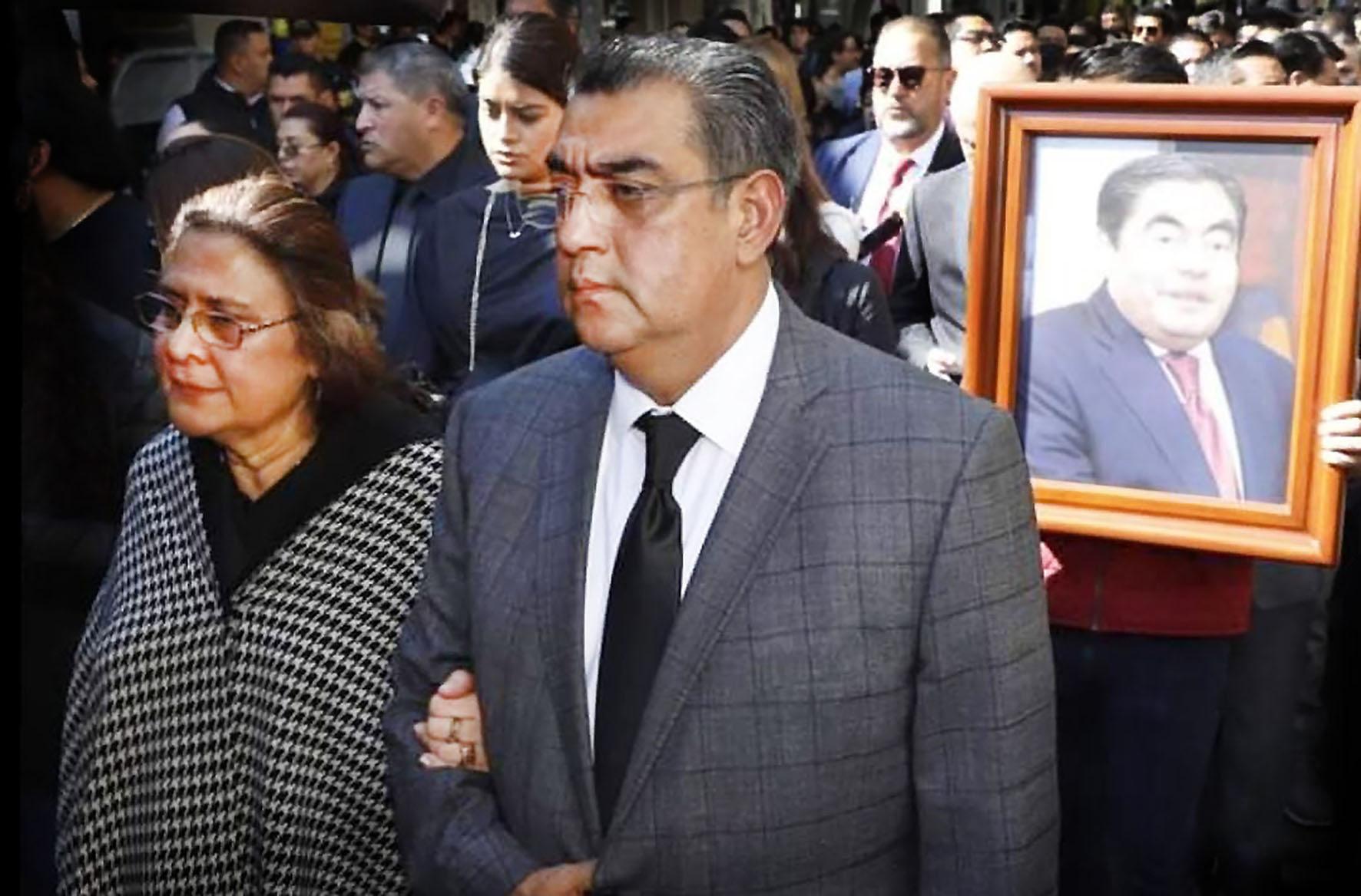 Rosario Orozco, con el gobernador Sergio Salomón, guiaron el cortejo fúnebre de Miguel Barbosa Huerta