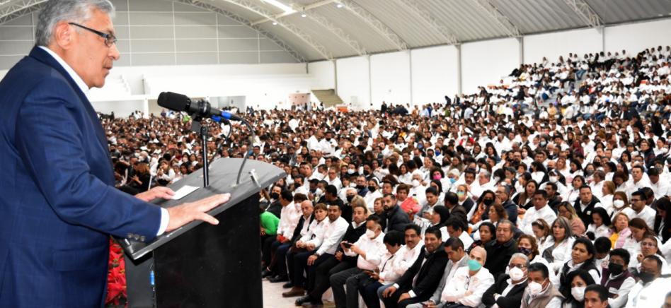 Titulares de diversas dependencias del gobierno del estado de Puebla y directivos de instituciones educativas dieron la bienvenida y respaldo al gobernador interino de Puebla, Sergio Salomón Céspedes Peregrina, quien rindió protesta al frente del Ejecutivo estatal tras el fallecimiento del mandatario Miguel Barbosa Huerta.