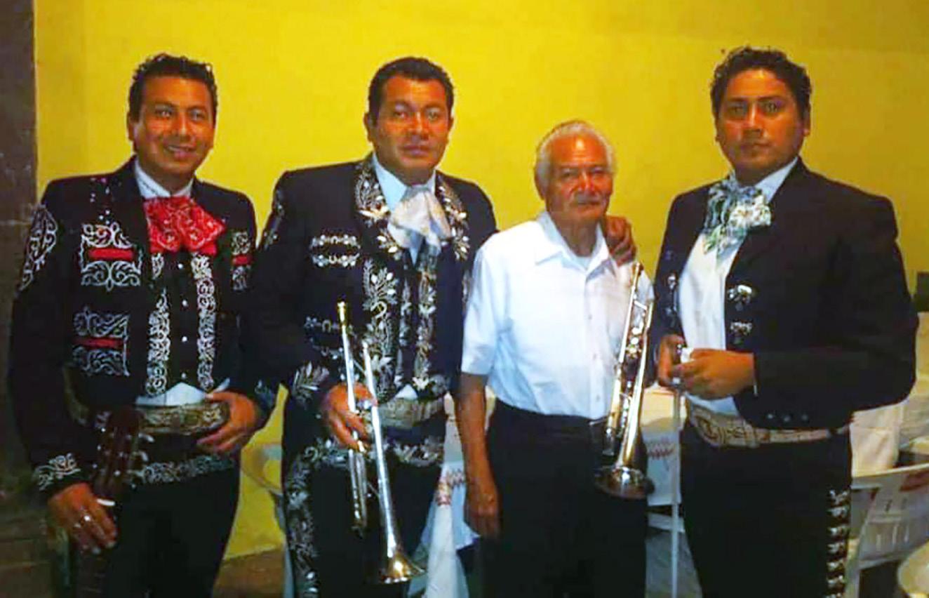 Juan Osorio, quien lleva la ba tuta en alto del Mariachi Colo nial desde hace 45 años, aunque recientemente es su hijo Adán quien dirige la agenda.