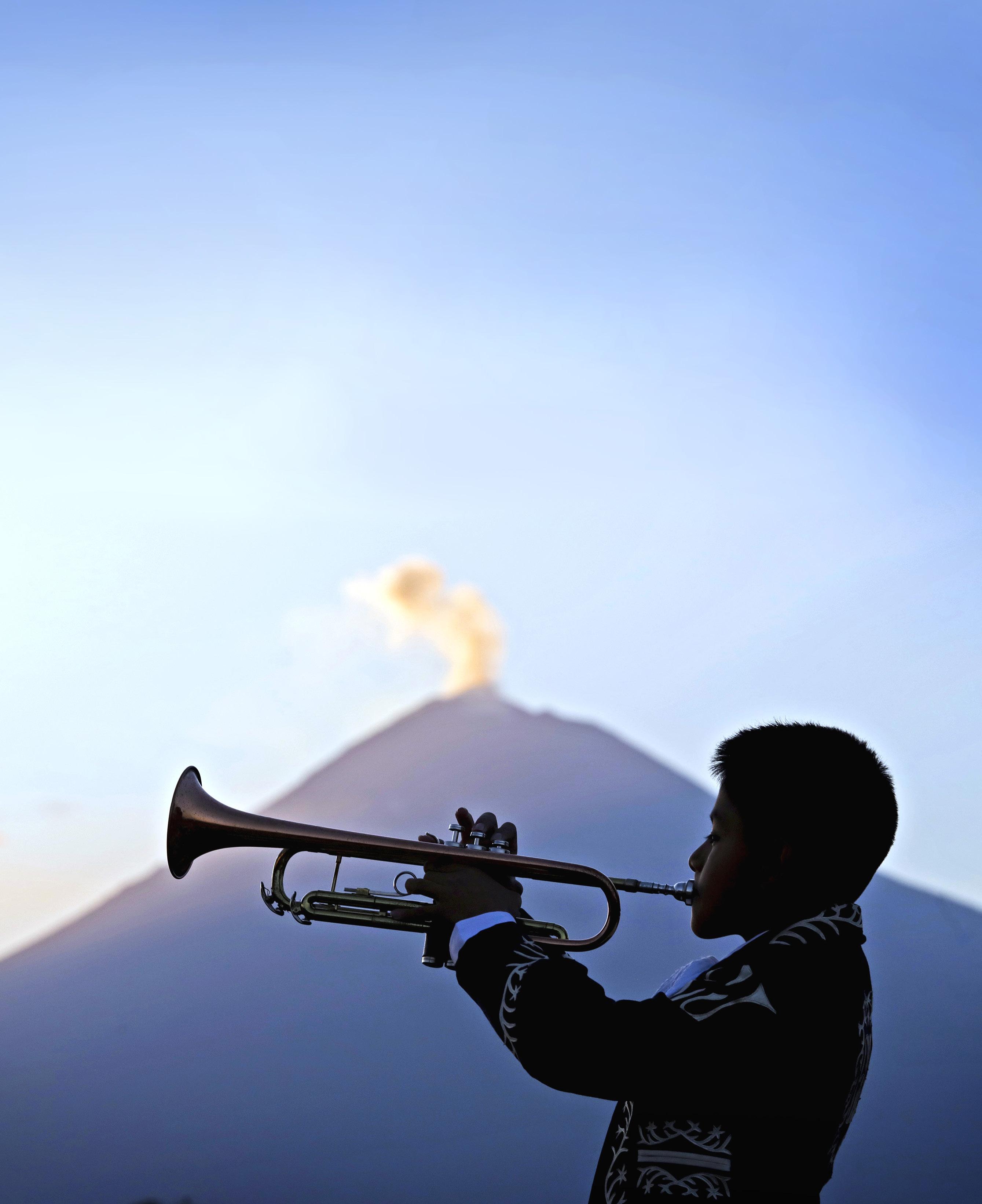 Ahora son amigos, porque todos los talentosos de la ruta del volcán se conocen y ayudan. El primero, a los cinco años, acompañaba en batería con ritmazo al grupo musical de su hermano y el segundo es el más precoz trompetista de bandas y mariachi