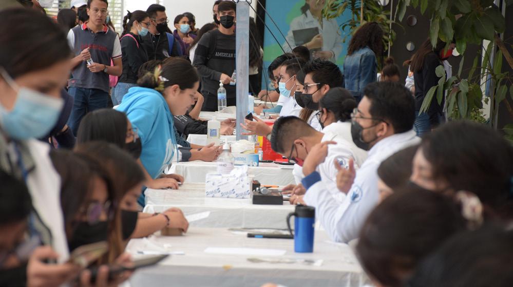 tomatológica, se aplicaron pruebas de detección rápida de VIH y dinámicas de activación física. Además, pláticas y talleres sobre primeros auxilios psicológicos y “Cero muertes por alcohol al volante”, para docentes y alumnos, respectivamente.