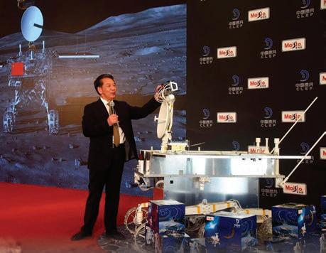 En el recuadro, Wu Weiren, diseñador jefe del programa de exploración lunar de China, anuncia el proyecto en la ciudad de Hefei.