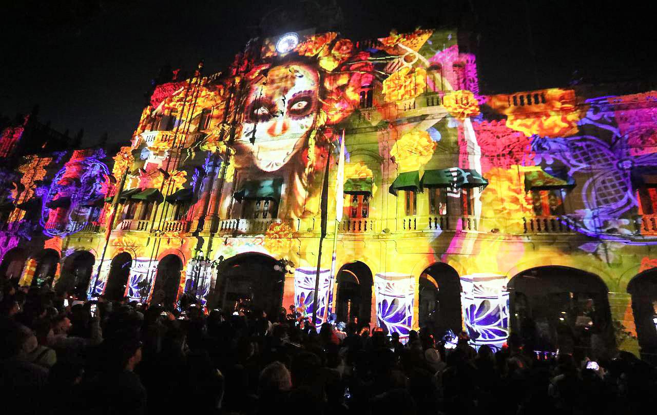Por primera vez, anoche fue exhibido este videomapping en la fachada del edificio civil más importante de la Angelópolis, ante cientos de paseantes. Ayer, los cementerios estuvieron rebosantes de visitantes y en el desfiles de catrinas el arte floreció con esplendor