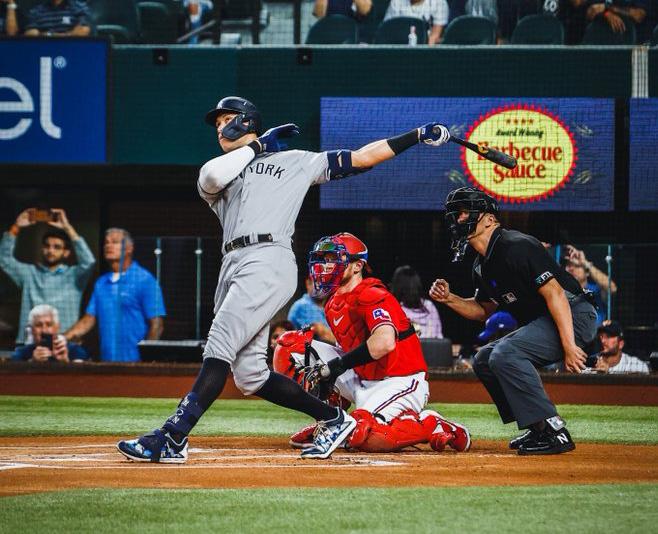 Judge conectó su jonrón número 62 de la temporada este martes en el Globe Life Field, volándose la cer ca para abrir el juego en el primer