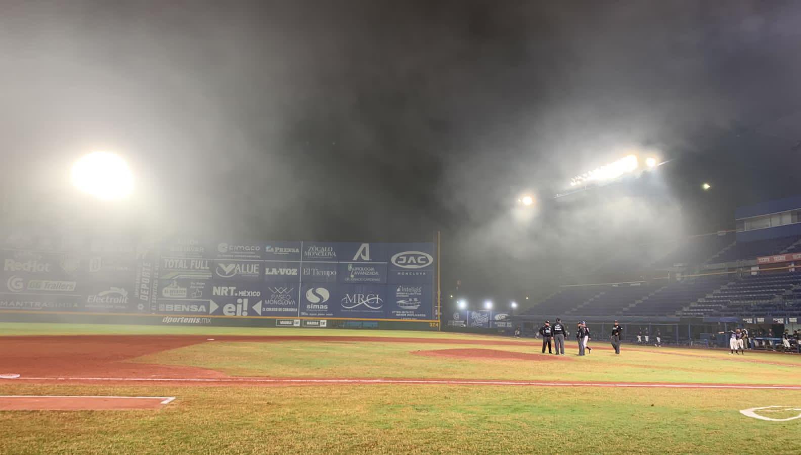 La poca visibilidad obligó al umpire a suspender el encuentro. CORTESÍA