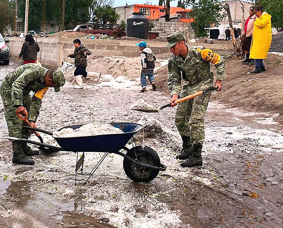 En Acatzingo se aplica el plan DN-III-E –auxilio a población civil en caso de desastre– para liberar el suelo del hielo caído durante granizadas