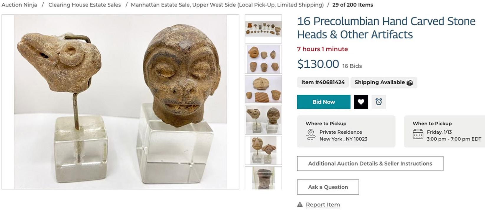 El INAH y la Secretaría de Cultural rechazaron la subasta de bienes patrimoniales prehispánicos que se realizó anoche en el portal de venta estadounidense AuctionNinja.