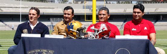 Con este telón de fondo, se realizó la presentación del encuentro deportivo entre Pumas CU y Águilas Blancas, correspondiente a la Semana 6 de la Conferencia de los 14 Grandes de Liga Mayor de la Organización Nacional Estudiantil de Futbol Americano (ONEFA), en una rueda de prensa que dio voz a los capitanes y entrenadores en jefe de ambos equipos, quienes