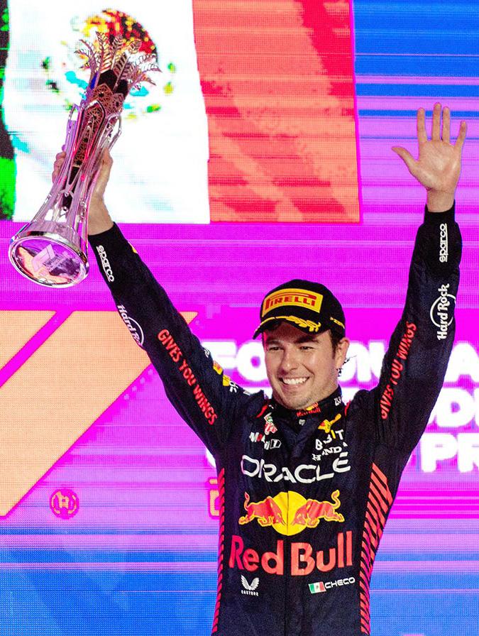 Pérez logró su podio número 28 desde que participa en el campeonato más importante de automovilismo en el mundo y esta victoria en suelo árabe se suma a las que tuvo en Bahrein en 2020 todavía en la escudería Racing Point, además de Azerbaiyán en 2021, Mónaco y Singapur en el 2022, estos cuatro últimos ya con Red Bull y en circuitos callejeros.