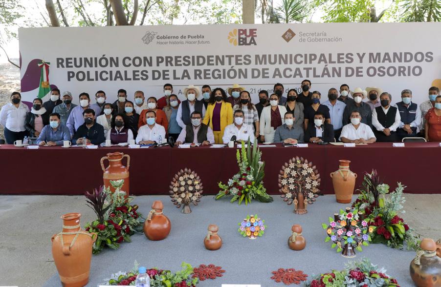 presidentes municipales y sus respectivos mandos policiales de la región de Acatlán de Osorio, a los que llamó a fortalecer a sus policías mediante capacitaciones, certificaciones, mejoramiento de salarios y reforzamiento de estrategias, a fin de incrementar la seguridad en esa zona de la entidad.