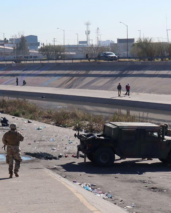 Un soldado de la Guardia Nacional de EU patrulla este miércoles en la valla fronteriza de El Paso, Texas, frente a Ciudad Juárez, México.