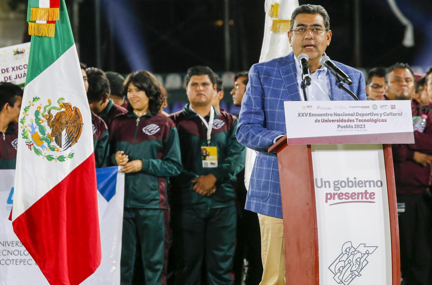 El gobernador de Puebla, Sergio Salomón Céspedes, inauguró el XXV Encuentro Nacional Deportivo y Cultural de Universidades Tecnológicas y celebró que la entidad sea sede de dicha iniciativa, ya que mejora los