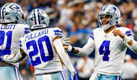 Dak Prescott, ‘quarterback’ de los Dallas Cowboys, reapareció ayer domingo en la victoria de su equipo por 24-6 sobre los Detroit Lions en la semana 7 de la NFL. Fue el primer partido de Prescott desde la semana uno, cuando salió lesionado del pulgar de la mano derecha. Este domingo pasó para 207 yardas, conectó una anotación y fue capturado dos veces. Con Detroit, su pasador Jared Goff sumó 228 yardas, fue capturado en cinco ocasiones y sufrió dos intercepciones.