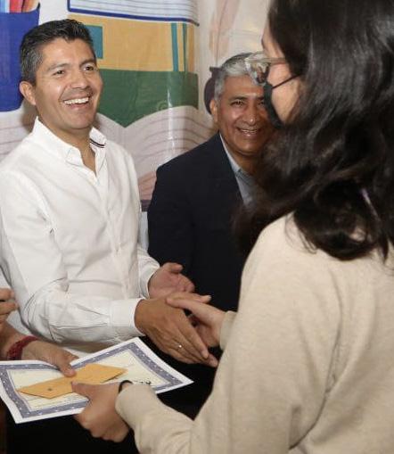 El alcalde de Puebla, Eduardo Rivera, entregó estímulos a hijos de empleados del servicio de limpia que obtuvieron las mejores calificaciones en educación básica