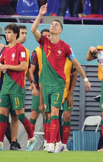 Al anotar ayer un gol de penal a Ghana, Cristiano Ronaldo se convirtió en el primer futbolista que marca cuando menos un gol en cinco mundiales consecutivosCristiano Ronaldo hizo su primer gol en Qatar 2022 con un penal rigorista. Francisco Ortiz Mendoza Con información de EFE Festeja su anotación. Dedicado a su hijo. Romance entre ‘el Bicho’y el balón.