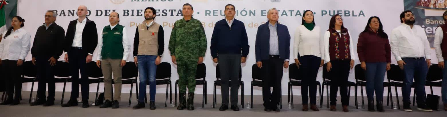 Obrador, estuvo ayer en Puebla, acompañado del gobernador Sergio Salomón Céspedes Peregrina. Informó que en julio habrá 3 mil sucursales del Banco del Bienestar en el país y este año se dispersarán 600 mil millones de pesos a 25 millones de beneficiarios.
