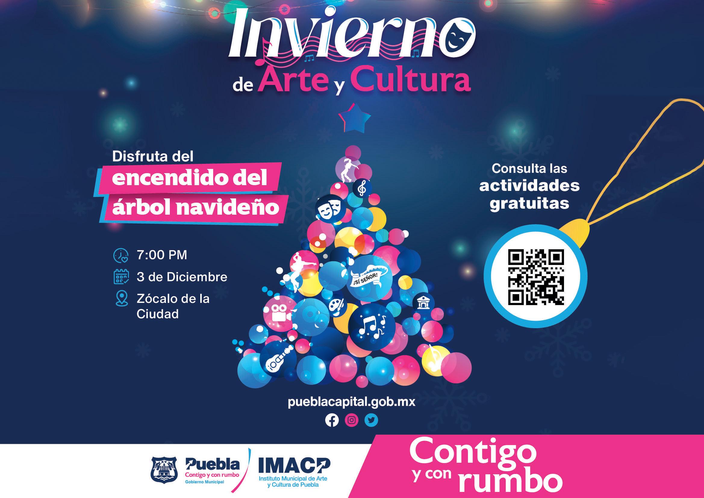 15 metros de alto. El próximo sábado habrá música, espectá culo de pirotecnia, espacios iluminados y el encendido del árbol a las 19:00 horas co mo inauguración del circuito “Paseo de Lu ces” y el programa especial de actividades. Consulta en las redes sociales del ayunta miento de Puebla las funciones, exposicio nes, los espectáculos en lugares públicos y recintos de teatro y danza; todos los días hay actividades hasta terminar el año.
