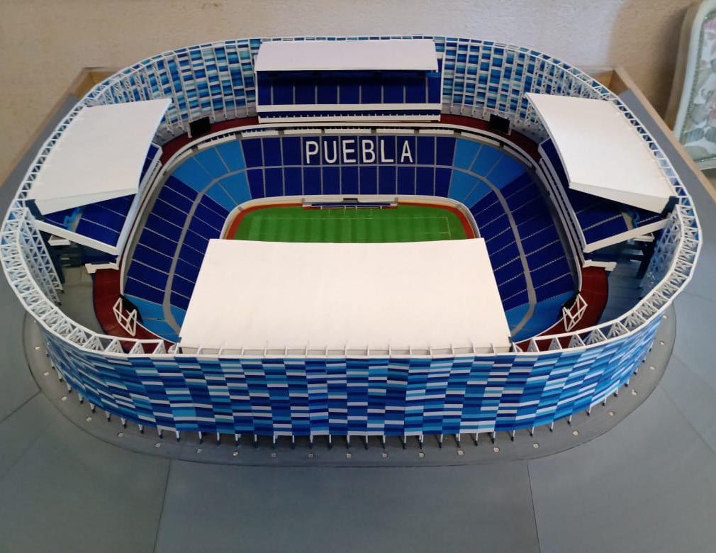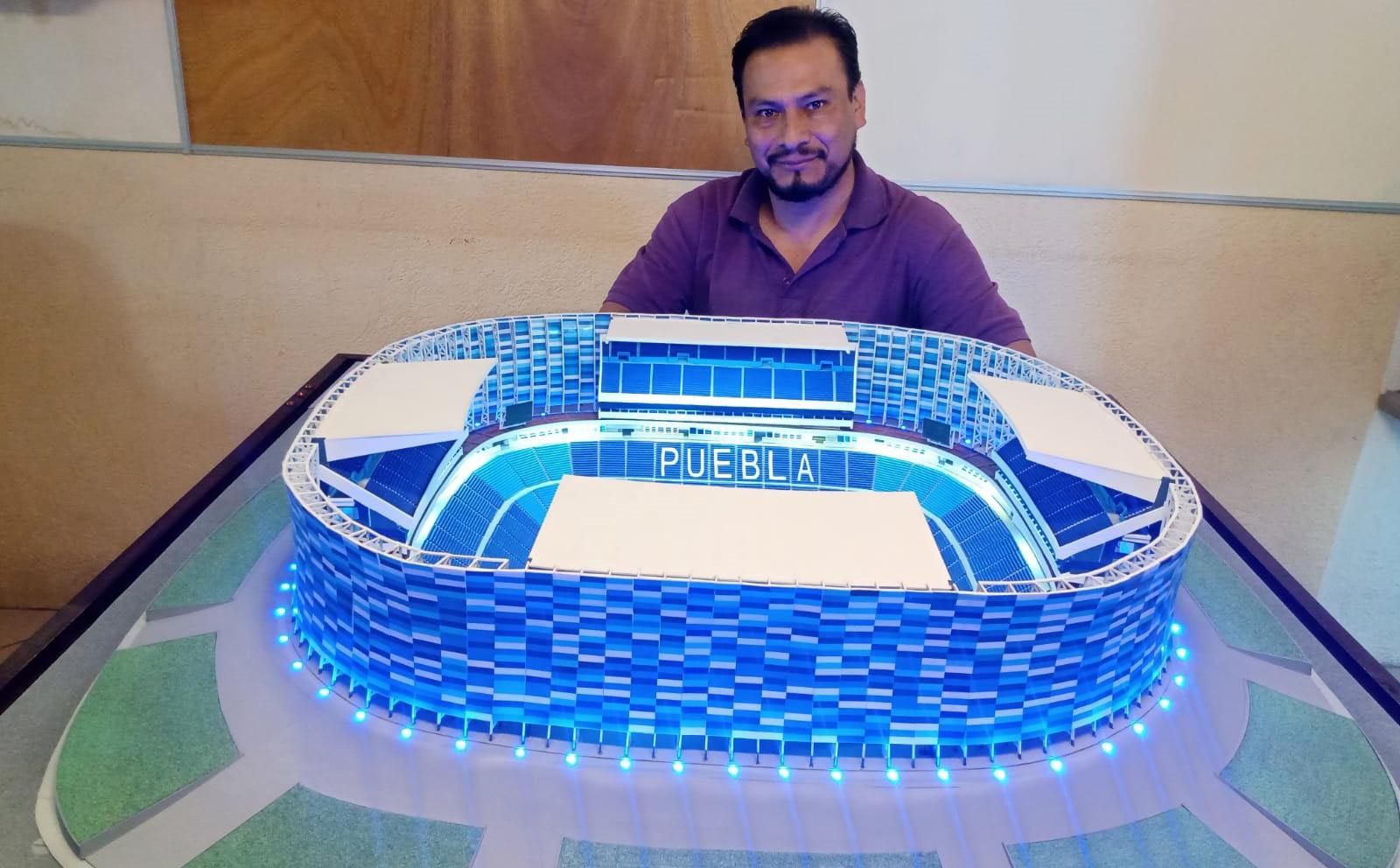 dedico a la elaboración de réplicas a escala de monumentos históricos de Puebla y de algunos municipios del estado, sobre todo en Pueblos Mágicos. Pero ahora me enfoqué en el estadio dos veces mundialista.