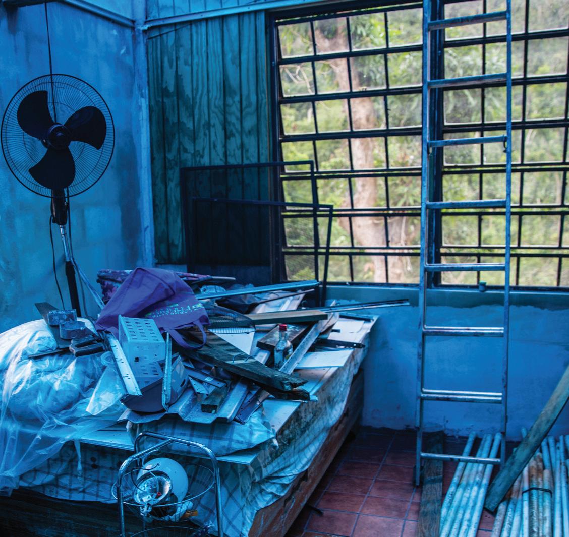 The home of Michel Rodriguez was devastated in the hurricane. The upper level no longer has a roof, allowing vines to creep in from above. Photos by Ben Moffat center, “but since some people chose to stay here, like two or three families stayed, that’s why we chose to stay there – in case we needed to help them, I wasn’t going to let anything happen to them.”