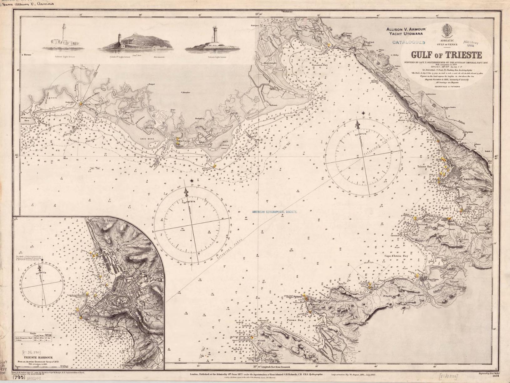 Le chiavi di lettura per descrivere Trieste sono varie e questo è uno degli elementi del fascino di questa città. La geografia è sempre un buon punto d’inizio e sicuramente lo è per questa località situata all’apice nord-orientale dell’Adriatico, all’interno di un grande golfo e ai piedi di un’imponente scarpata che dal Carso degrada bruscamente verso il mare. I suoi fondali che raggiungono i diciotto metri hanno permesso alla città giuliana l’approdo
