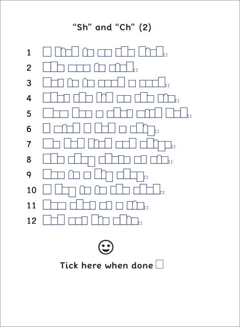 •The boxes give the child valuable clues as to the shape of the word and the number of letters in each word.