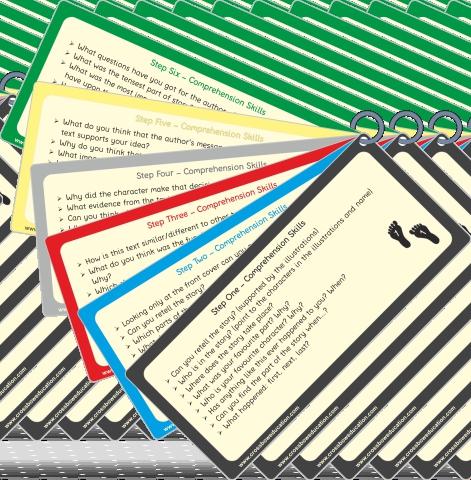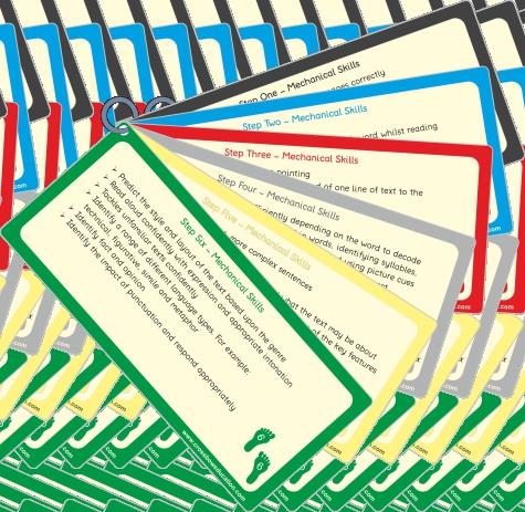 Ÿ When listening to a pupil read use double sided mechanical and comprehension skills cards on the keyring as prompts to develop success.
