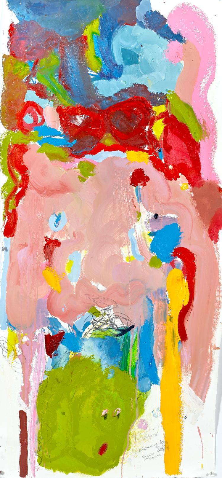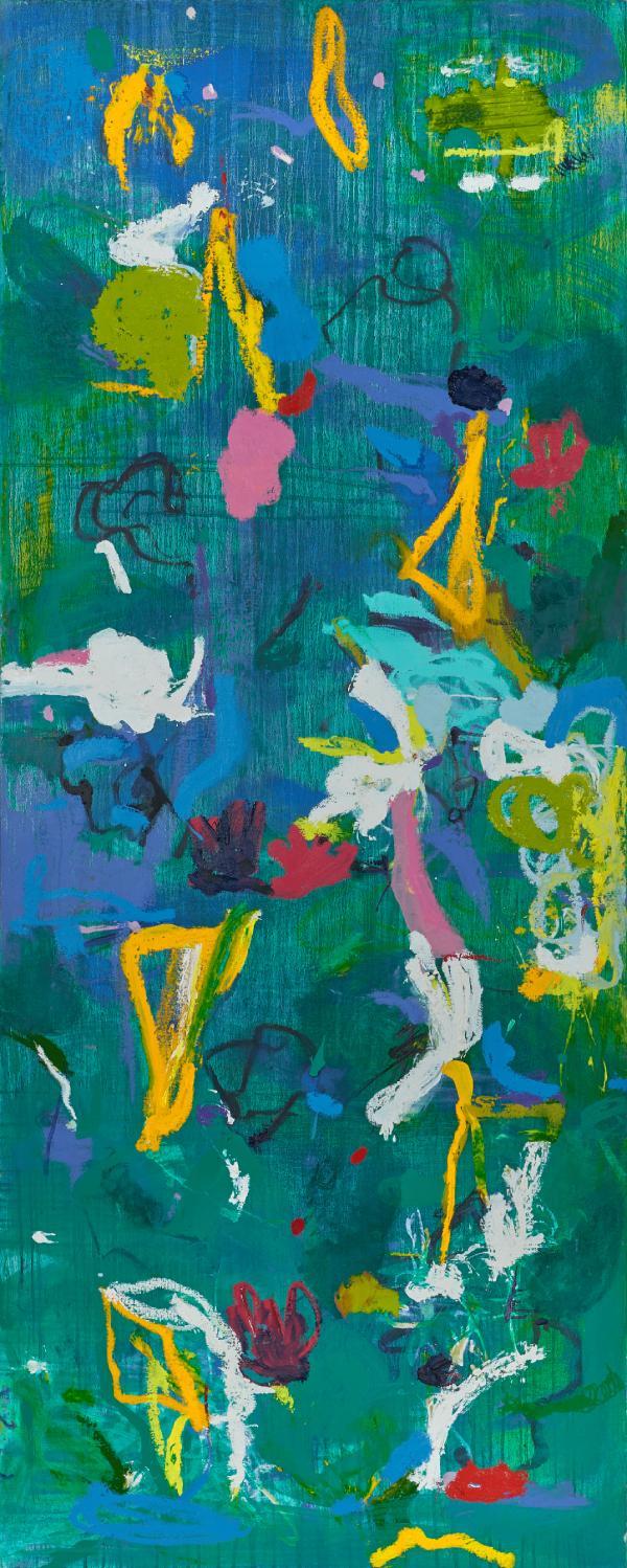 Priscilla Heine, WeBirds, 2020, oil paint and stick on linen, 80” x 40”