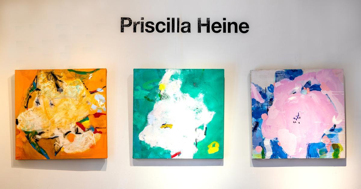 Priscilla Heine's abstract paintings and sculptures are exuberant with lush and electric poetry. While unspiraling peace and pleasure, Heine engages in a visual language that is flexible yet complex, heralding an irreverent beauty. Through the use of dynamic calligraphy, rich pigments, organic figuration and layers of personal metaphor, this visual dialogue is lyrical while possessing an uncanny humor. It bends the corners of space with barely identifiable references, creating and embracing connectivity. The power of the whole is always at hand as Heine doesn't so much interpret the world around her as she absorbs it, bringing it to life with swashbuckling energy and reverence.