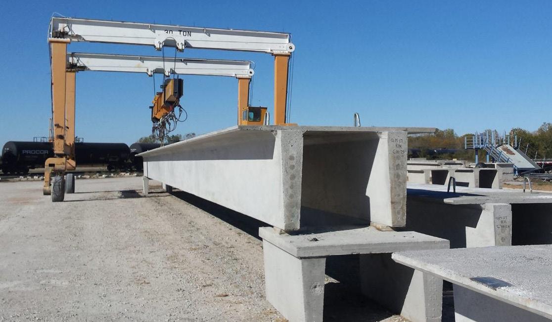 Bridge girders are available in standard AASHTO and KDOT profiles, including the K2, the K3, and the K4. Various sizes of prestressed inverted tee girders are also available.