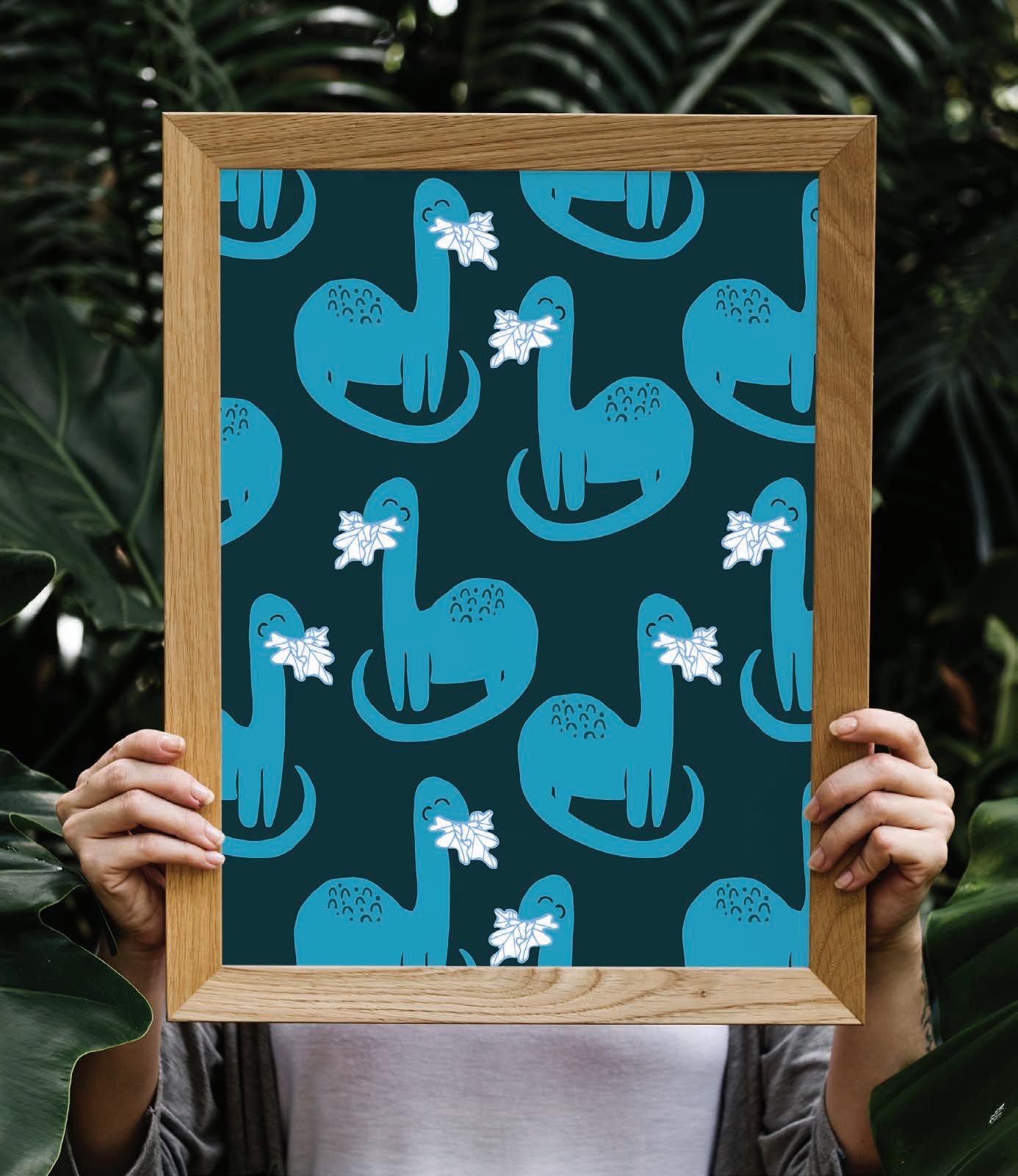Natural Habitat Hungry Brontosaurus Triassic Era Vegetation Stegosaurus Before Time Fossil Fragments Dino Prints Colorway 1 Cross My Art LLC glangelelke@.gmail.com www.crossmy.art