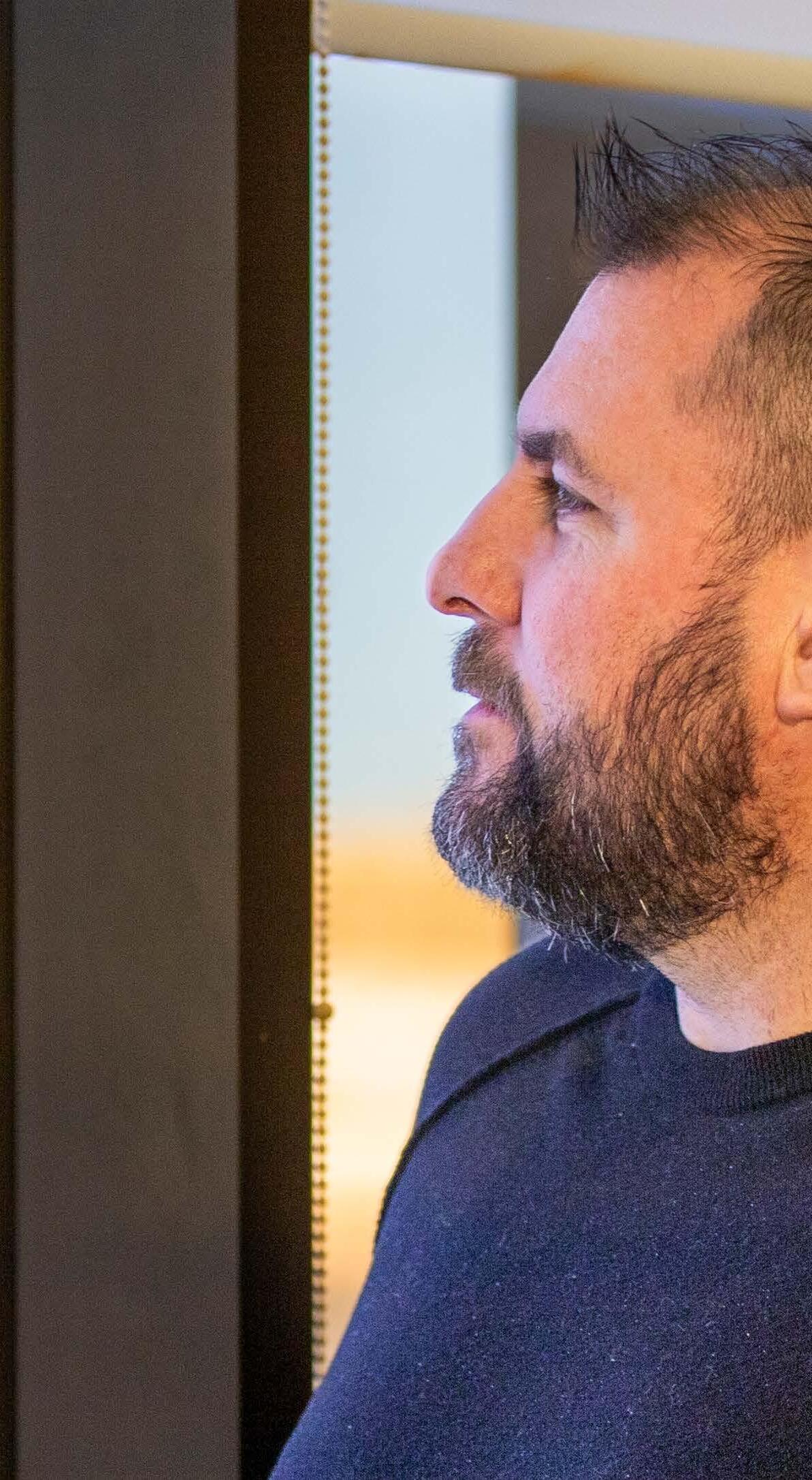 Scanning the busy tables, my attention is drawn to a man across the room. He’s tall and barrel-chested, his tattooed arms bulging as he leans against the wall staring at his phone. His rugged appearance and stern demeanor suggest a troubled soul. This is exactly the kind of person who needs a program like this. I turn back to Vince, trying to focus, but the image of the burly man lingers in my mind.