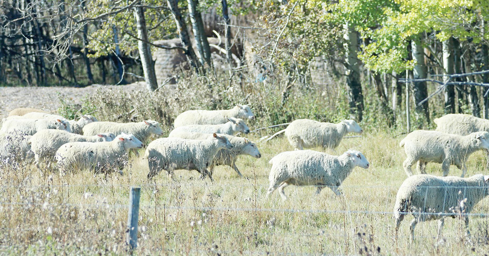 Not sure what spooked this flock of sheep grazing in a pasture along Provincial Road 264 near the junction of Highway 16 west of Shoal Lake, but it was follow the leader at the Dallas and Larissa Kominko’s farm as the animals were on the move on the afternoon of Friday, Oct. 10.