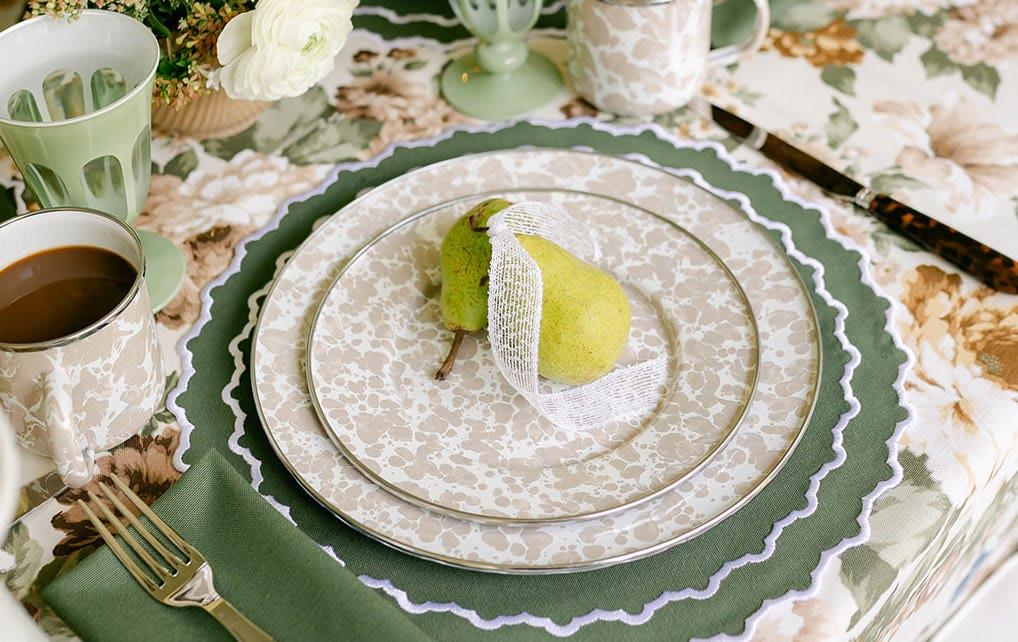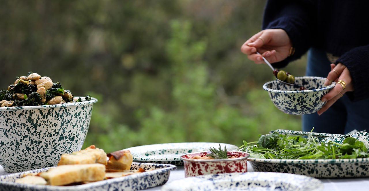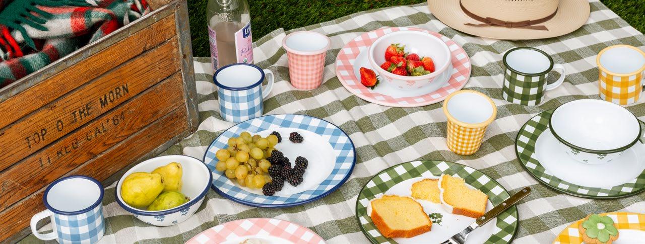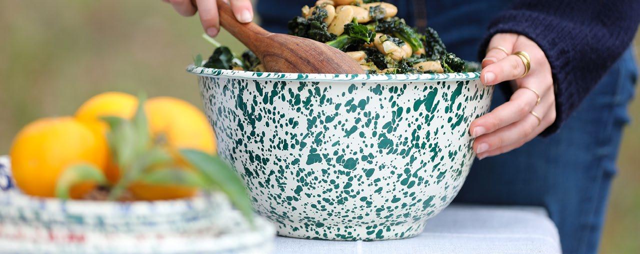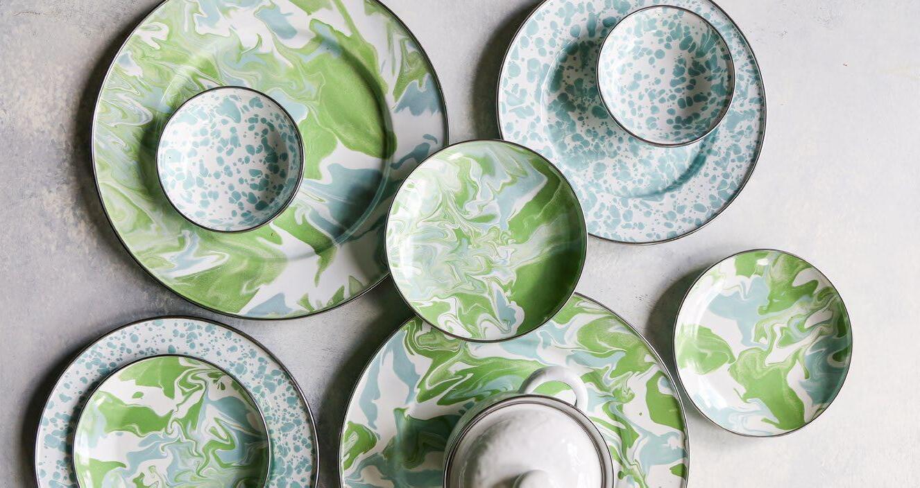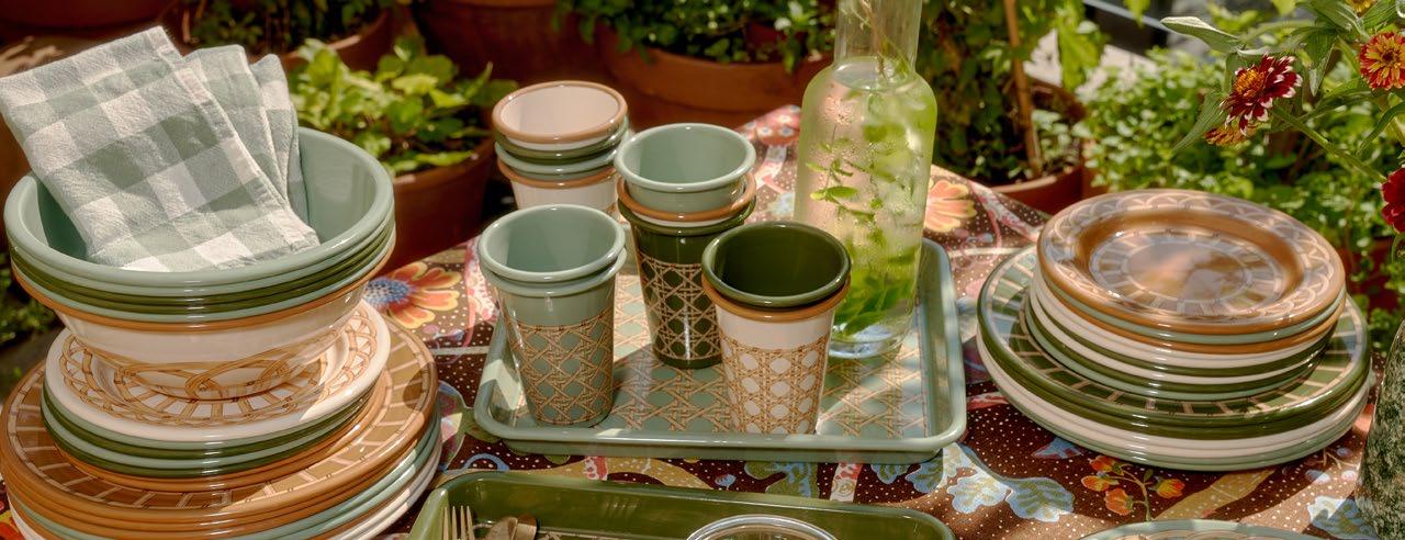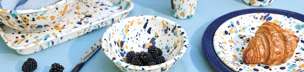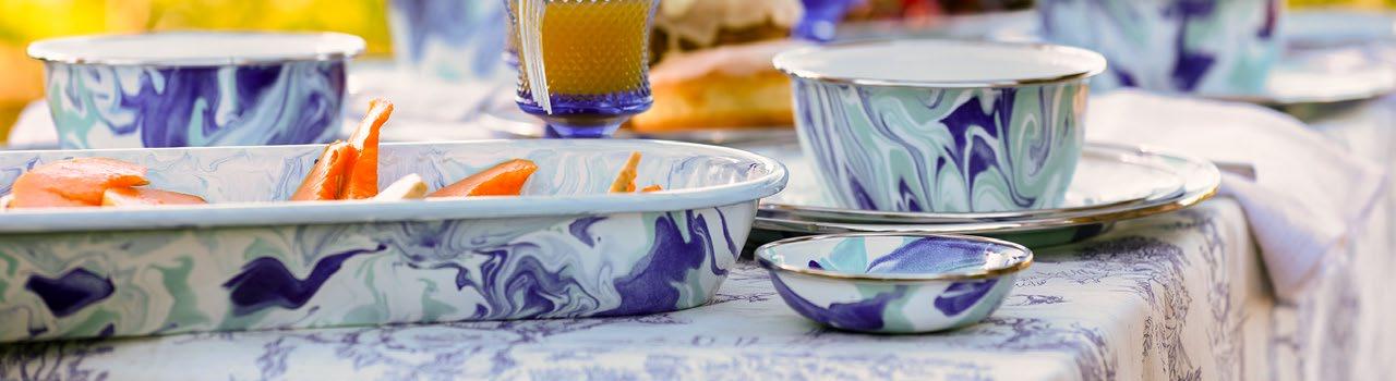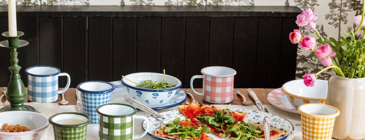 In collaboration with Domino magazine, we’ve created a sophisticated enamelware collection designed by Creative Director Kate Berry. Known for her eclectic, colorful, and layered tablescapes, Kate brought in on-trend wicker accents and a warm fall palette to elevate every table setting. Though inspired by autumn, this timeless collection is perfect year-round.