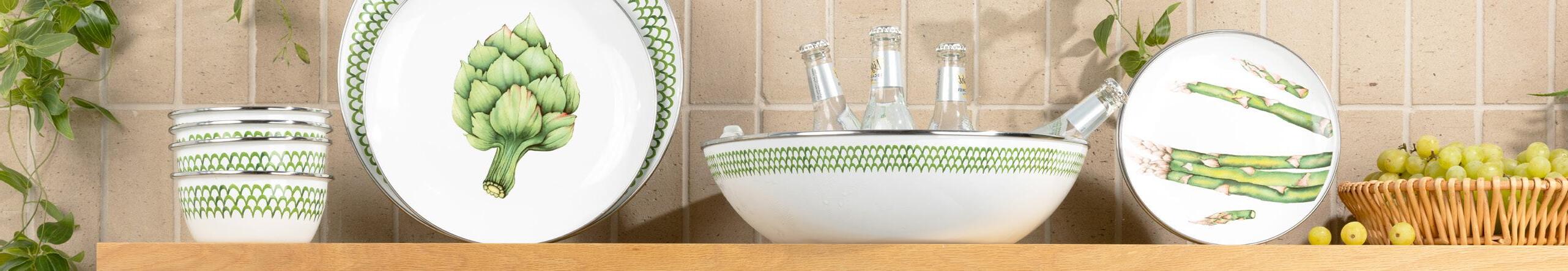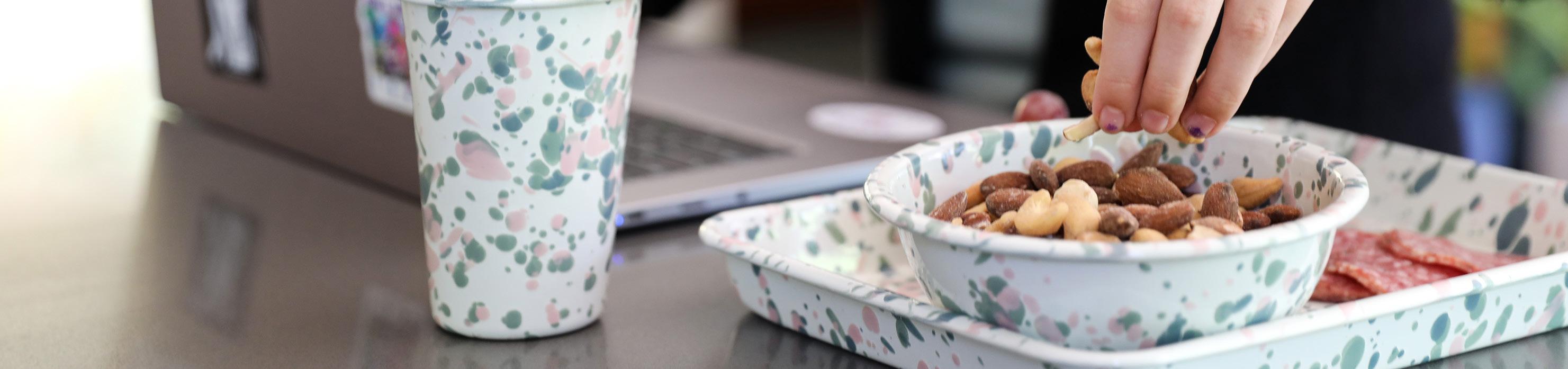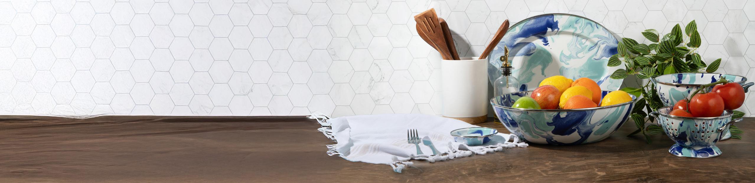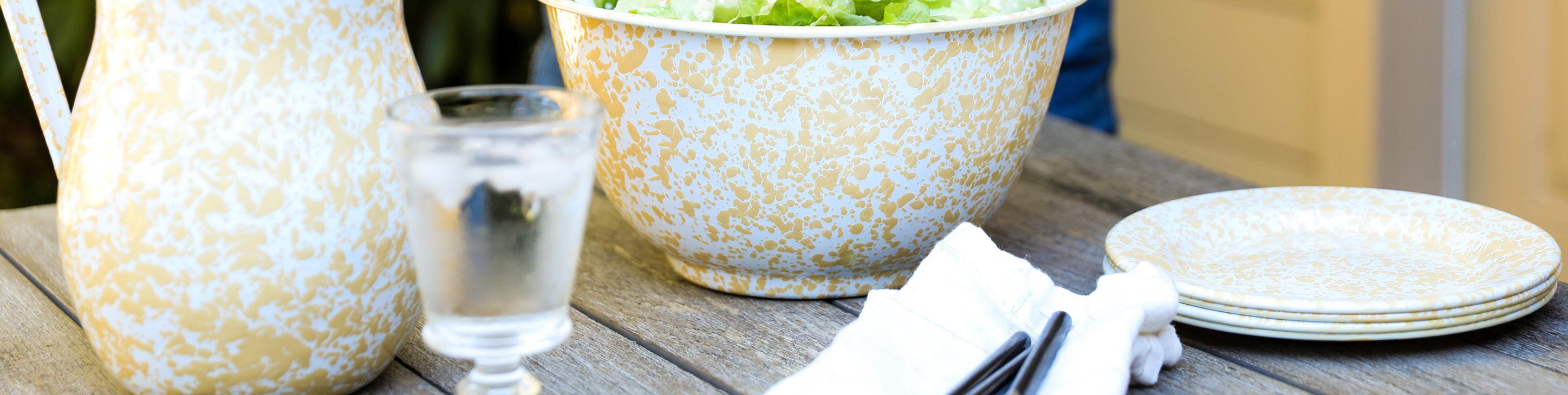 In collaboration with Domino magazine, we’ve created a sophisticated enamelware collection designed by Creative Director Kate Berry. Known for her eclectic, colorful, and layered tablescapes, Kate brought in on-trend wicker accents and a warm fall palette to elevate every table setting. Though inspired by autumn, this timeless collection is perfect year-round.