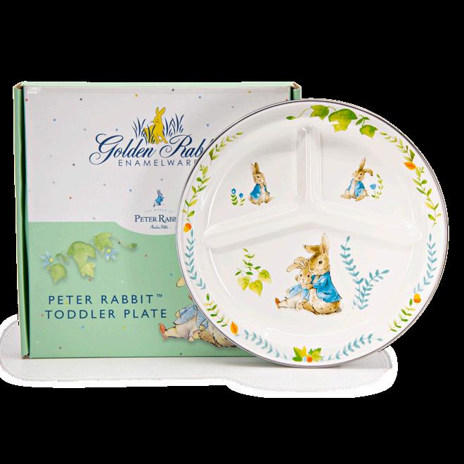 A durable 9” enamelware toddler plate with divided sections that keeps foods separate and makes mealtime fun. Comes with the gift box.