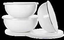 . 19 5 cup Sauce Pan Min/Mult 2 $ 18.00 each 79 3 quart Sauté Pan Min/Mult 2 $ 33.00 each 54 Set of 3 Mixing Bowls Min/Mult 2 sets $ 44.00 /set 31 4 quart Dutch Oven Min/Mult 2 $ 27.00 each 32s2 Set of 2 - 2 cup Petite Tureen Min/Mult 2 $ 19.00 each 80 5 quart Sauté Pan Min/Mult 2 $ 42.00 each 30 Set of 3 Nesting Bowls Min/Mult 2 sets $ 22.00 /set 72 6 quart Stock Pot Min/Mult 2 $ 36.00 each 78 4½ quart Baking Pan Min/Mult 2 $ 32.00 each 53 2 quart Brownie Pan Min/Mult 2 $ 25.00 each 75* 18 quart Stock Pot (Select Colors Only) WW, CB, RD Min/Mult 2 $ 89.00 each 15 10½ quart Roasting Pan $ 65.00 each 17* Pie Plate Min/Mult 2 $ 16.00 each Available in select colors only. * WW Solid White on White CB Cobalt Swirl GL Sea Glass Swirl RD Red GY Grey Swirl 79 80 15 78 53 17