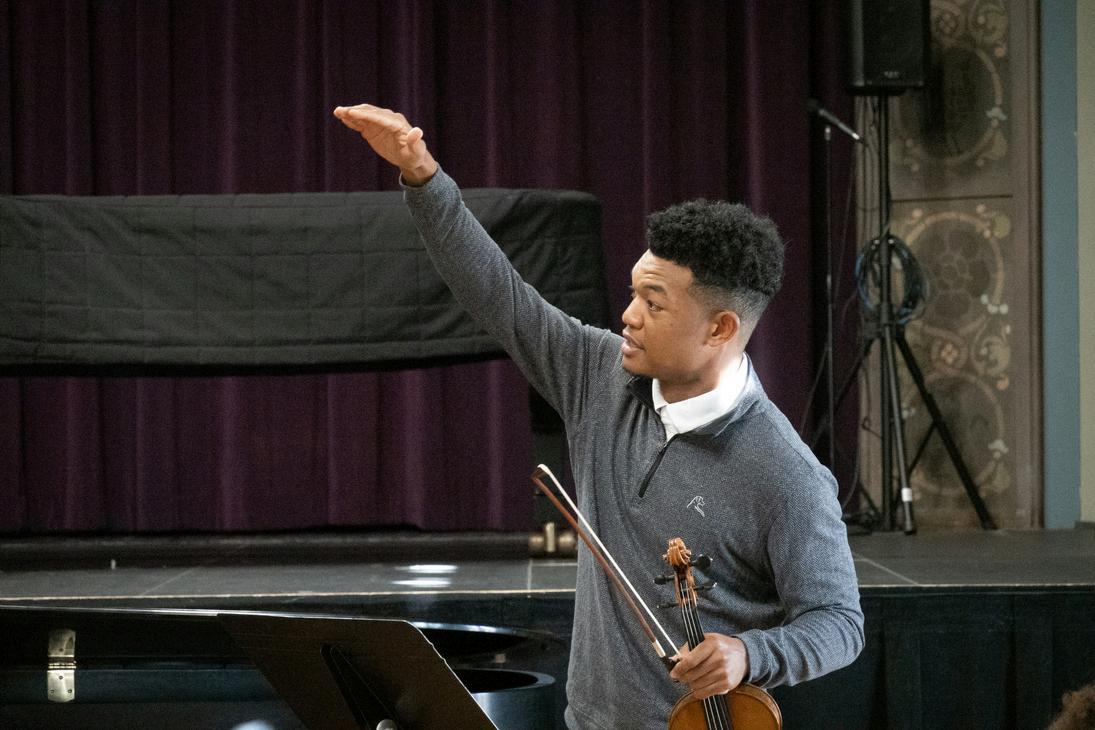 ThankstothegenerosityofSanFrancisco Performances,wehadtheprivilegeofhostingtwo internationallycelebratedviolinists:Midoriand RandallGoosby.Bothartists,nowfaculty membersatTheJuilliardSchool,areknownfor theirexquisiteperformancesandalsobeing outstandingteachers.IntheirCrowden masterclasses,theymadestudentsfeelatease whileencouragingthemtoexplorenew approachestotheirmusic.