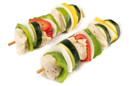 Marinated morsels of Boneless Chicken Breast Skewered with fresh garden Peppers, Onions and Squash.
