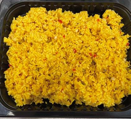A blend of traditional Spanish flavors and vegetables mixed with yellow rice.