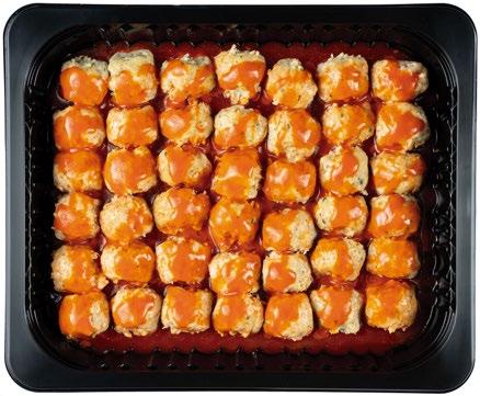 Our Traditional Chicken meatballs enrobed in a spicy buffalo sauce.