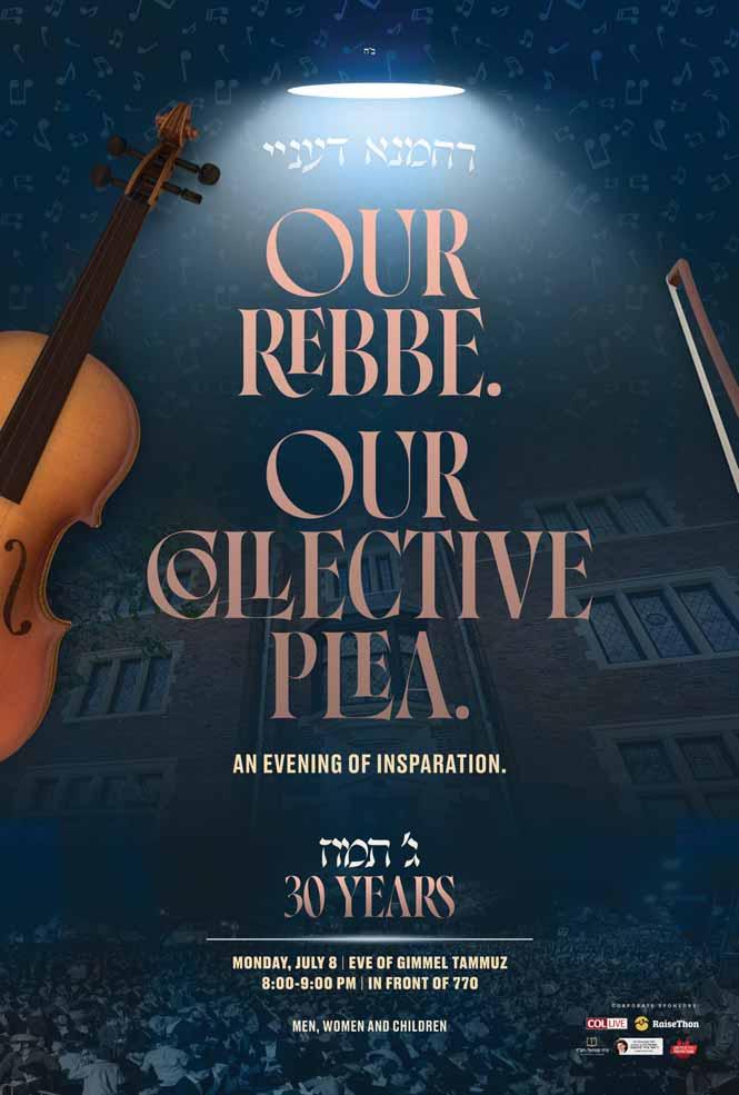 In this merit may we be "zoiche" that much before Gimmel Tammuz, the Rebbe will be revealed as Melech Hamoshiach and redeem us from this deep and bitter Golus and lead us all to the true and final Geulo, NOW MAMAOSH.