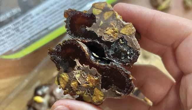 3. Mix melted chocolate with a drop of tahini and crushed pistachios.