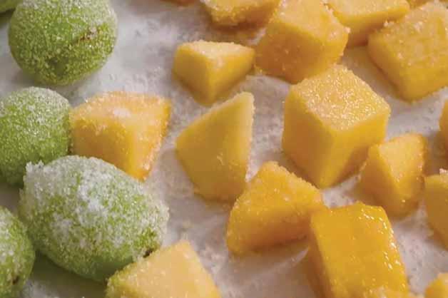 3. Dip fruits into sugar.