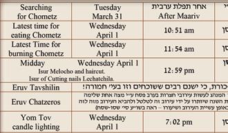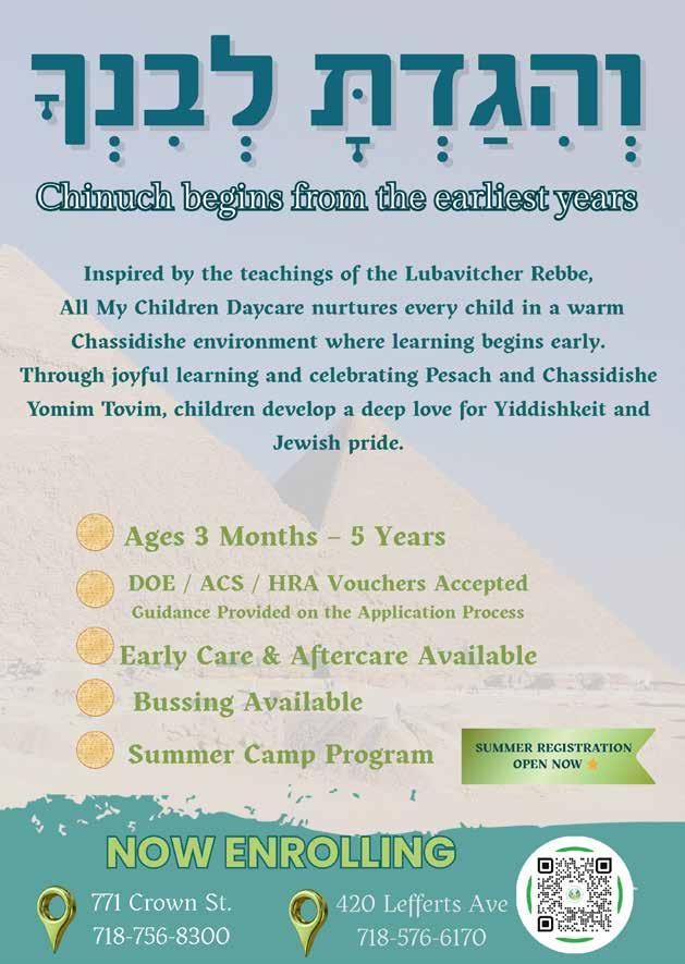 THE DROP BOX AT WILL BE CHECKED EACH DAY OF CHOL HAMOED INCLUDING EREV SHABBOS AND EREV YOM TOV UNTIL 2:00 PM, FOR DROP OFF AFTER 2:00, PLEASE CALL RABBI KASIMOV. P E S A C H 5 7 8 6